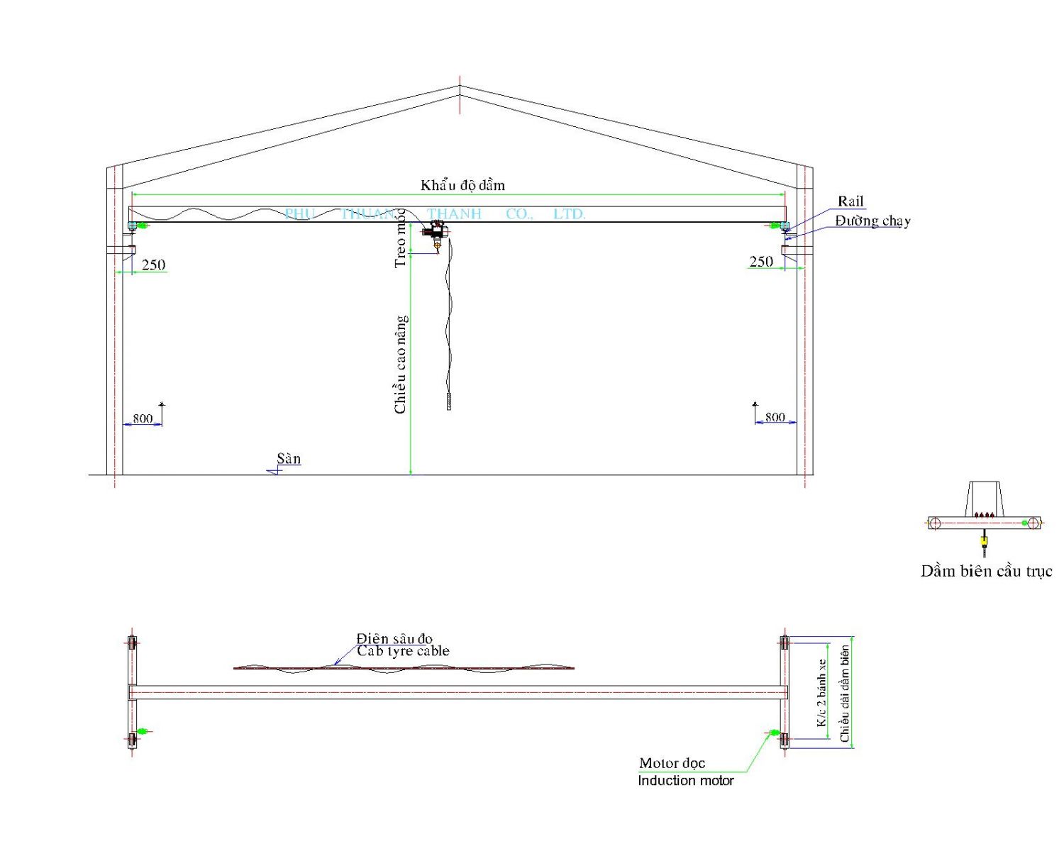 Thông số kỹ thuật Cầu trục dầm đơn : - Tải trọng nâng : ...... tấn - Khẩu độ cầu trục ...