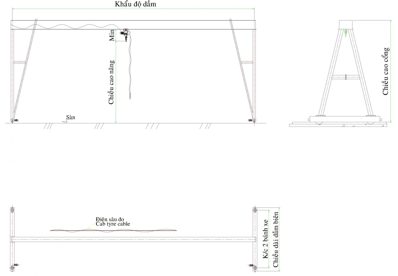 Thông số kỹ thuật Cổng trục dầm đơn chân ống :
