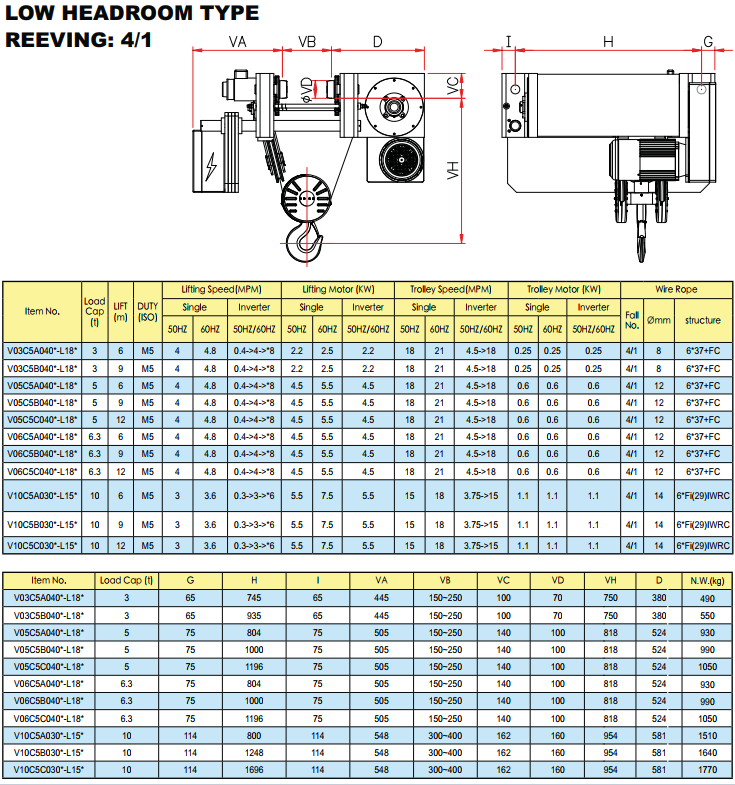 Low headroom hoist 4/1