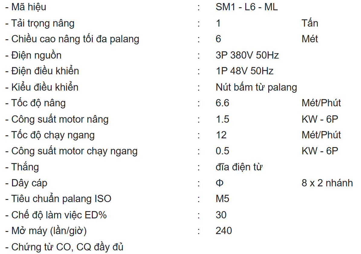 Palang điện cáp Sungdo 1 tấn, dầm đơn