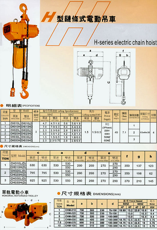 Thông số kỹ thuật Palang điện xích ITS :