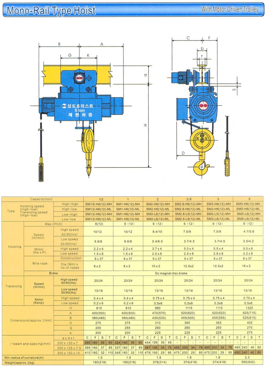 THÔNG TIN SẢN PHẨM : Palang Sungdo dầm đơn. Là loại palang thông dụng hiện nay. Palang này sử dụng cho cầu trục dầm đơn có tải trọng và khẩu độ nhỏ.
